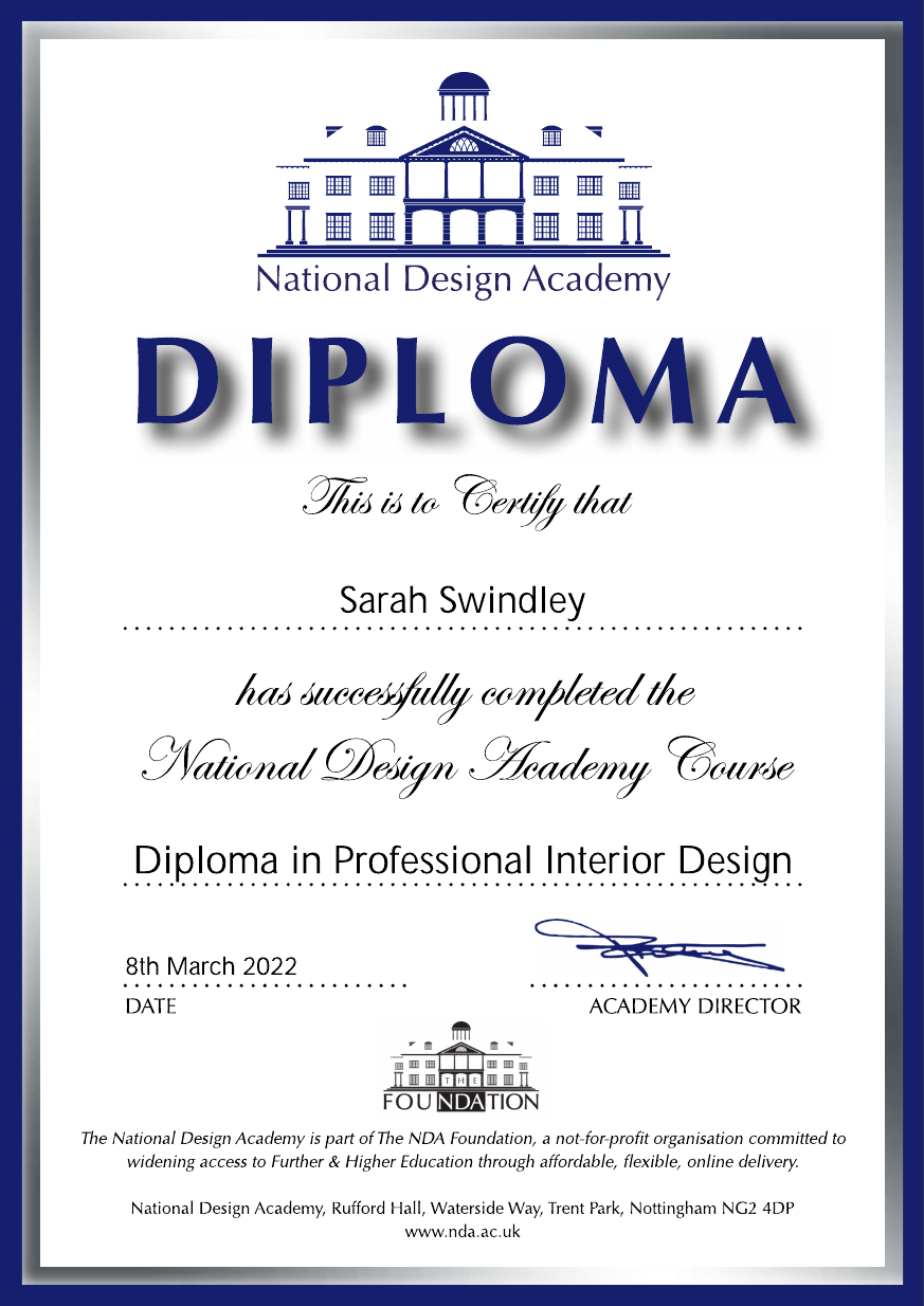 So today I have created my website and received my official Diploma in Professional Interior Design….and it’s my daughters birthday so a very big day in the Swindley household